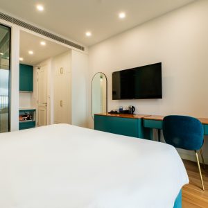 Trang bị giường ngủ êm ái, nội thất tiện nghi, cùng cửa sổ lớn đón ánh sáng tự nhiên và gió biển, Studio Ocean View là lựa chọn lý tưởng cho du khách muốn tận hưởng không gian yên tĩnh, thư giãn và lãng mạn. Phòng phù hợp cho cặp đôi, khách nghỉ dưỡng dài ngày hoặc khách công tác yêu thích sự tiện nghi và tầm nhìn đẹp.