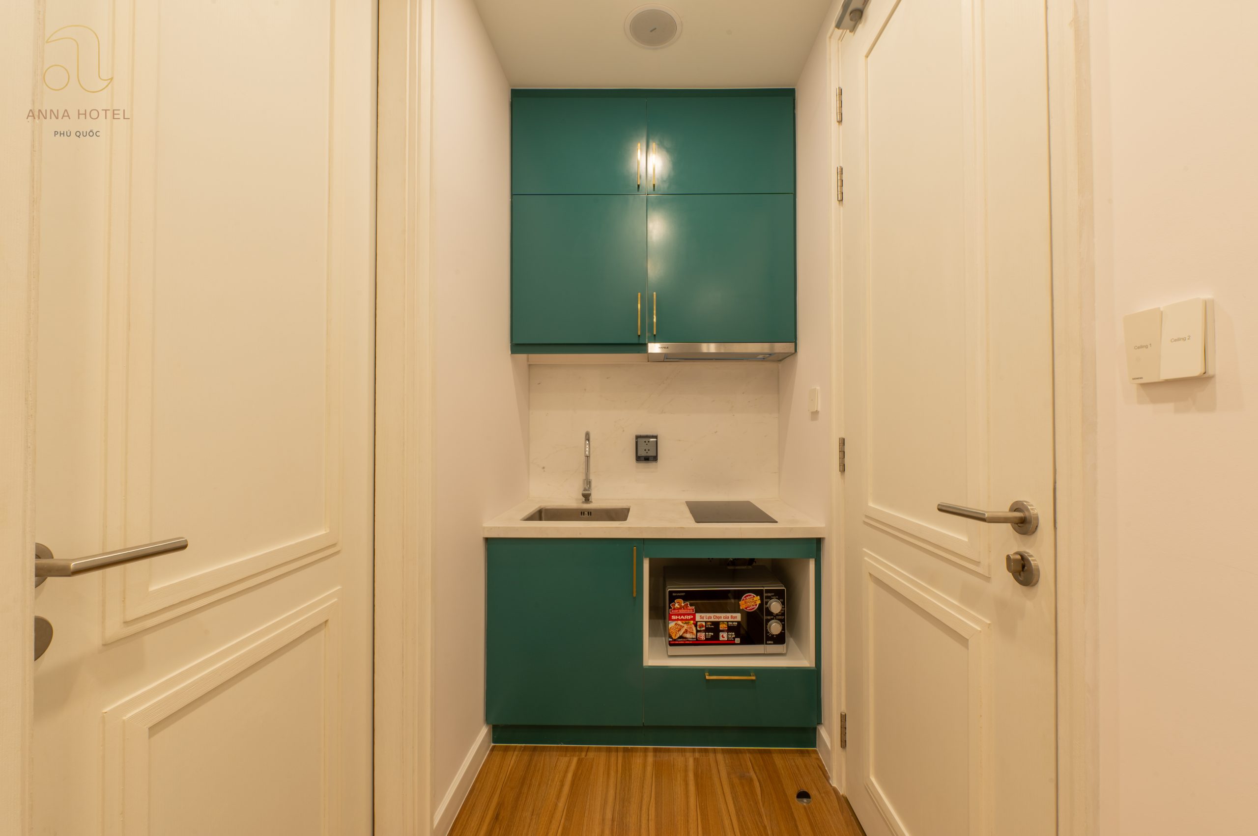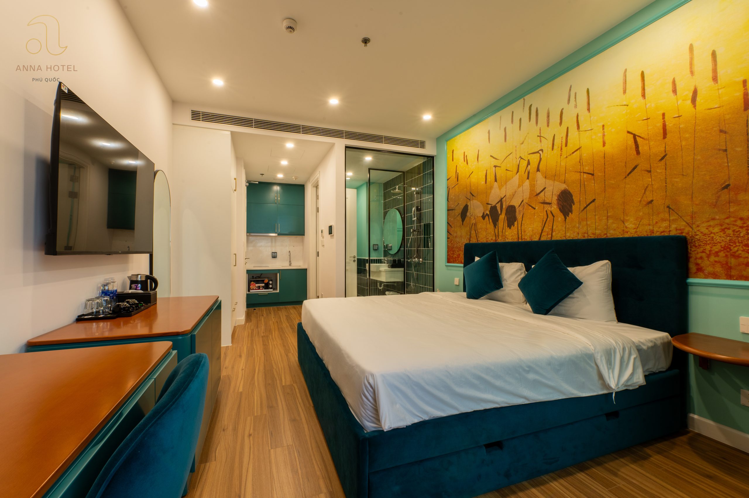 Studio Ocean View tại Anna Hotel Phú Quốc mang đến không gian nghỉ dưỡng thoáng đãng và riêng tư, với tầm nhìn hướng biển tuyệt đẹp. Phòng được thiết kế theo phong cách hiện đại, kết hợp hài hòa giữa khu vực nghỉ ngơi và sinh hoạt, tạo cảm giác rộng rãi và thoải mái.